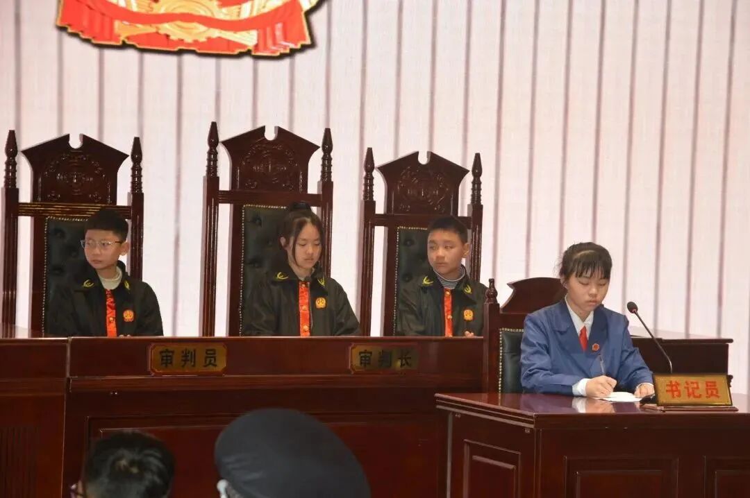 “咚”,伴随一声清澈的法槌声落下,由真实案例改编的模拟法庭庭审活动正式开始,十三名同学化身为“审判长、审判员、书记员、公诉人、辩护人、被害人、被告人以及法警”,按照真实的庭审程序圆满完成了此次预防校园欺凌模拟法庭宣教活动。
